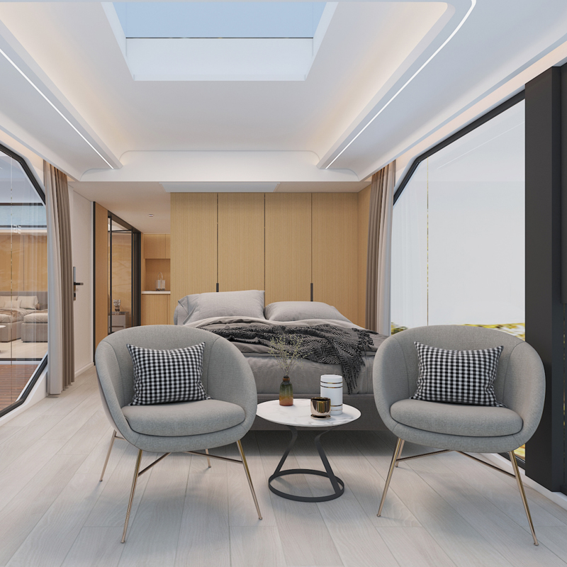 Inside, every inch is designed for elegance and flexibility. The modular layout allows customized bedrooms, bathrooms, kitchens, and leisure areas. Intelligent control systems enable lighting, temperature, and music to shift seamlessly with your mood.